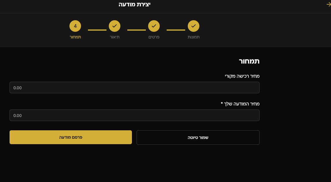בחרו מחיר הוגן שמתאים למצב הפאה ולשוק. אפשר לבדוק מחירים של פאות דומות באתר.